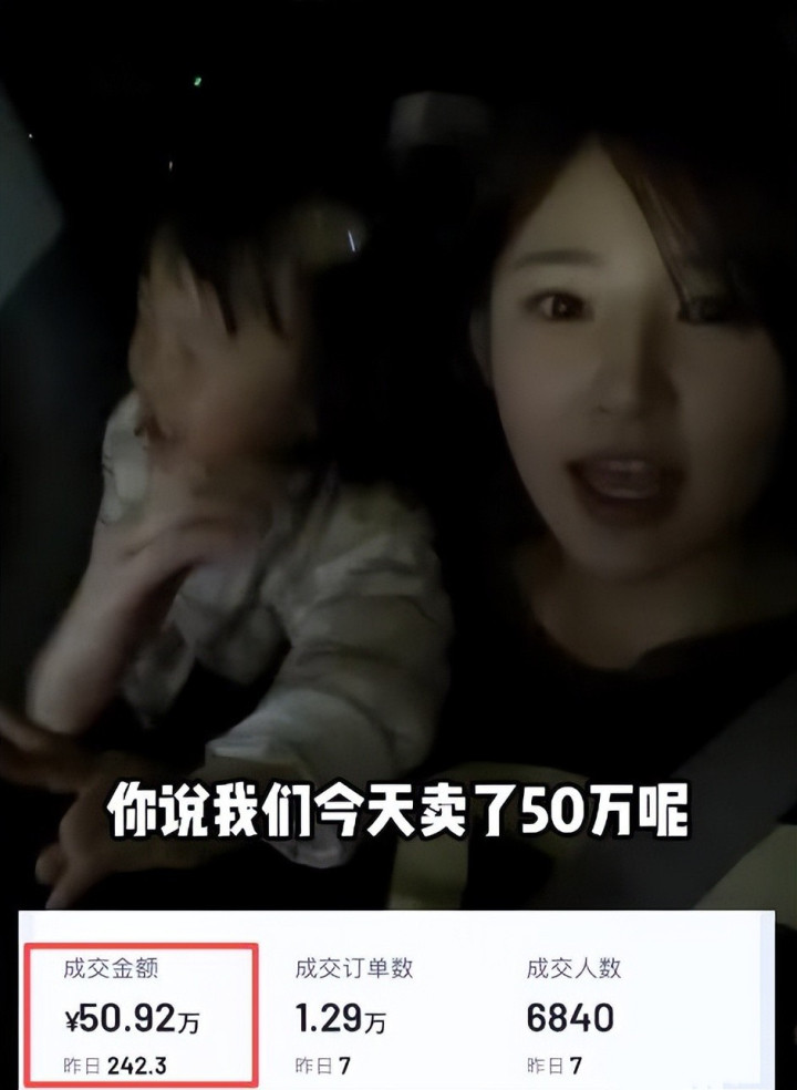 一次是因为她带着男儿闪闪到万达广场直播卖童衣,销售额达到50万,被网友认为是在整活。