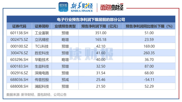 超五成公司预报盈利 工业富联、立讯精密、TCL科技盈利限制居前