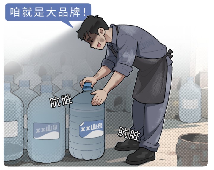 最初是桶的保质期很难明确,根据标准条目,桶装水水桶使用年限不应该杰出2.5年,重叠使用次数也不宜杰出100次。但刻下还莫得规章条目强制实施,是以也给不正规商家好多操作空间,更别说黑心工场了。致使还有些商家以次充好,把大品牌的澌灭桶防伪标签撕下来,贴到假桶上,脏桶告捷改进。