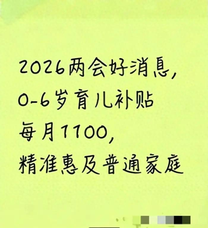 2026年育儿补贴大升级!0到6岁齐能领,最高每月1100元,这笔钱别错过。养个孩子到底要花几许钱?奶粉、尿不湿、辅食、托育……算下来,好多年青父母直呼压力山大。别急,2026年宇宙两会给你送来了一个实打实的红包。