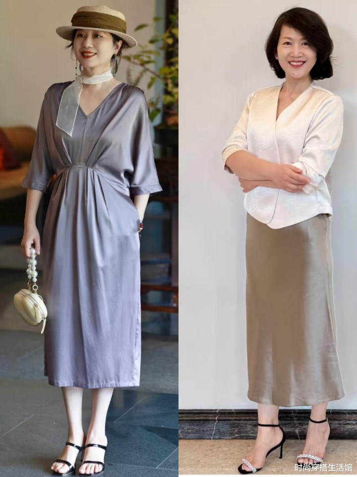 临了关于中年女性来说念念要我方的穿搭更斯文和高等的话,咱们还不成少了缎面裙,毕竟缎面裙的材质格外的贵气和高等,尤其是缎面的面料穿在身上在阳光的映照下吐露出浅浅的光辉感和高等感,约略圆善呈现出中年女性的私有魔力仁和质,圆善的彰显出优雅感和高等感。