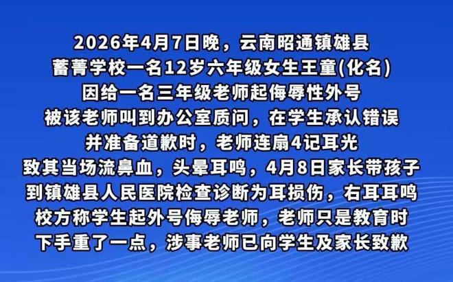 本以为大量熟识齐早已懂得“明哲保身”的深嗜深嗜,没念念到还有“强者”,敢对学生下手。云南一位女熟识,因为小学女生给我方取绰号,怒扇了对方4个耳光,这场风云也因此绝对失控了。