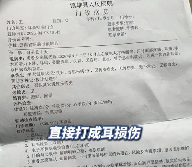 女熟识一边持住女生的脸,一边抡起胳背狠狠地扇了女孩四个耳光,打得女学生就地狂喷鼻血,澳门十大娱乐网站目下一黑,家长带着孩子去病院搜检,恶果更是惊魂动魄:耳挫伤+右耳耳鸣。