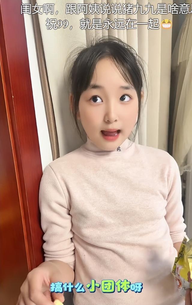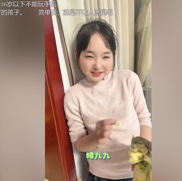 一个小学女生,梳着干净利索的头发,衣着粉嫩的上衣,手里拿着零食,看起来可人又乖巧,但她的一段话,关于成年东谈主来说,有点恐怖了。